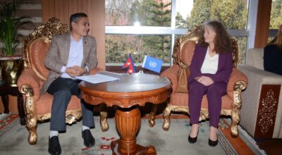 काठमाडौं – गृहमन्त्री ओमप्रकाश अर्यालसँग संयुक्त राष्ट्रसङ्घ, नेपालका आवासीय संयोजक लिला पिटर्स याहियाले शिष्टाचार भेट