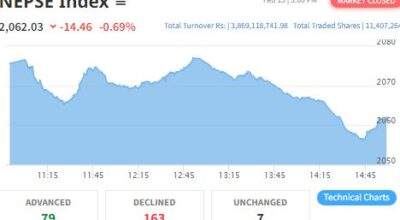 काठमाडौं– कारोबारको अन्तिम दिन बिहीबार नेप्से परिसूचकदोहोरो अंकले घटेको छ । नेपाल स्टक एक्सचेन्जका अनुसार