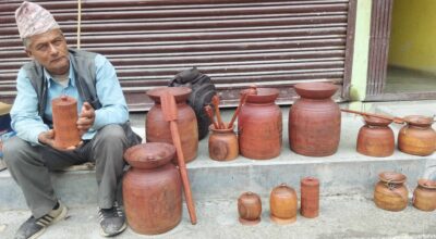 म्याग्दी – दशपाथे काठको ठेकीमा मदानी बेरेको नेतीलाई दाहिने र देब्रे हातले पालैपालो तानेर घ्वार्र।।।