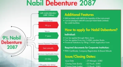 बैंकिङ्ग समाचार, काठमाडौं । नबिल बैंक लिमिटेडले तीन अर्ब रूपैयाँ बराबरको ऋणपत्र निष्काशन गर्ने भएको