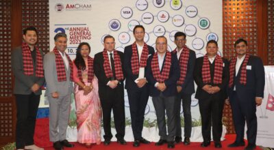 काठमाडाैं- अमेरिकी लगानीमा नेपालमा सञ्चालित व्यवसायहरूका छाता संस्था अमेरिकन चेम्बर अफ कमर्स नेपाल (एमच्याम) को