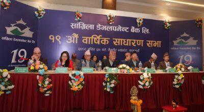 काठमाडौं- सांग्रिला डेभलपमेन्ट बैंकको ५.२६३ प्रतिशत लाभांश पारित भएको छ। बैंककाे आइतबार सम्पन्र १९औं वार्षिक