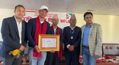 काठमाडौं- द क्लिफ नेपाललाई आन्तरिक राजश्व कार्यालय, बाग्लुङले उत्कृष्ट करदाताका रूपमा सम्मान गरेको छ। पर्वत