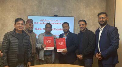 बैंकिङ्ग समाचार, काठमाडौं ।आइजीआई प्रुडेन्सियल इन्स्योरेन्स लिमिटेड र भक्तपुरको भीमसेनस्थानमा रहेको सिद्धि स्मृति प्रतिष्ठान बिच