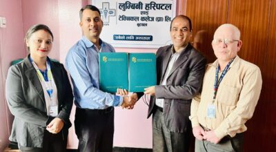 कामना सेवा विकास बैंकले बुटवल रुपन्देहि स्थित लुम्बीनी हस्पिटल एण्ड टेक्नीकल कलेजसँग सेवा शुल्क छुट