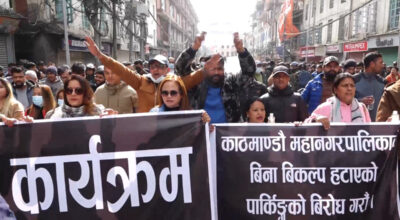 काठमाडौं– काठमाडौं महानगरपालिकाले गरेको न्युरोड क्षेत्रमा पार्किङ निषेधको बिरोधमा व्यवसायीहरू दोस्रो दिन पनि आन्दोलित भएका