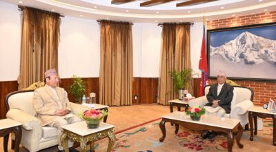 काठमाडाैं – राष्ट्रपति रामचन्द्र पौडेलसँग प्रधानन्यायाधीश प्रकाशमान सिंह राउतले आज भेट गरेका छन्। शीलत निवासस्थित