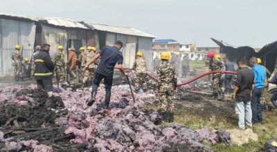 झापा – यहाँको अर्जुनधारा नगरपालिका–११, बुट्टाबारीस्थित कपास प्रशोधन उद्योगमा आज आगलागी हुँदा लाखौँ मूल्य बराबरको