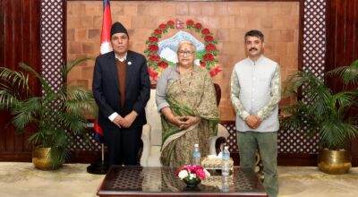 काठमाडौं – प्रधानमन्त्री सुशीला कार्कीसँग राष्ट्रियसभाका अध्यक्ष नारायणप्रसाद दाहालले शिष्टाचार भेटवार्ता गरेका छन्। प्रधानमन्त्रीको सरकारी