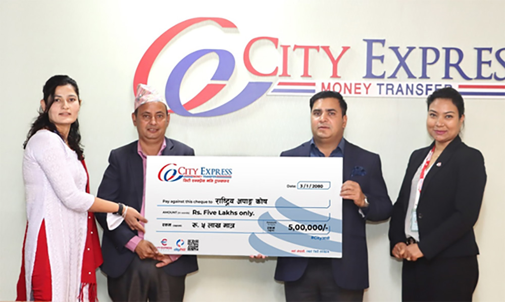 बैंकिङ्ग समाचार, काठमाडौं । सिटी एक्सप्रेस मनी ट्रान्सफरले सामाजिक उत्तरदायित्व अन्तर्गत राष्ट्रिय अपाङ्ग कोषलाई ५