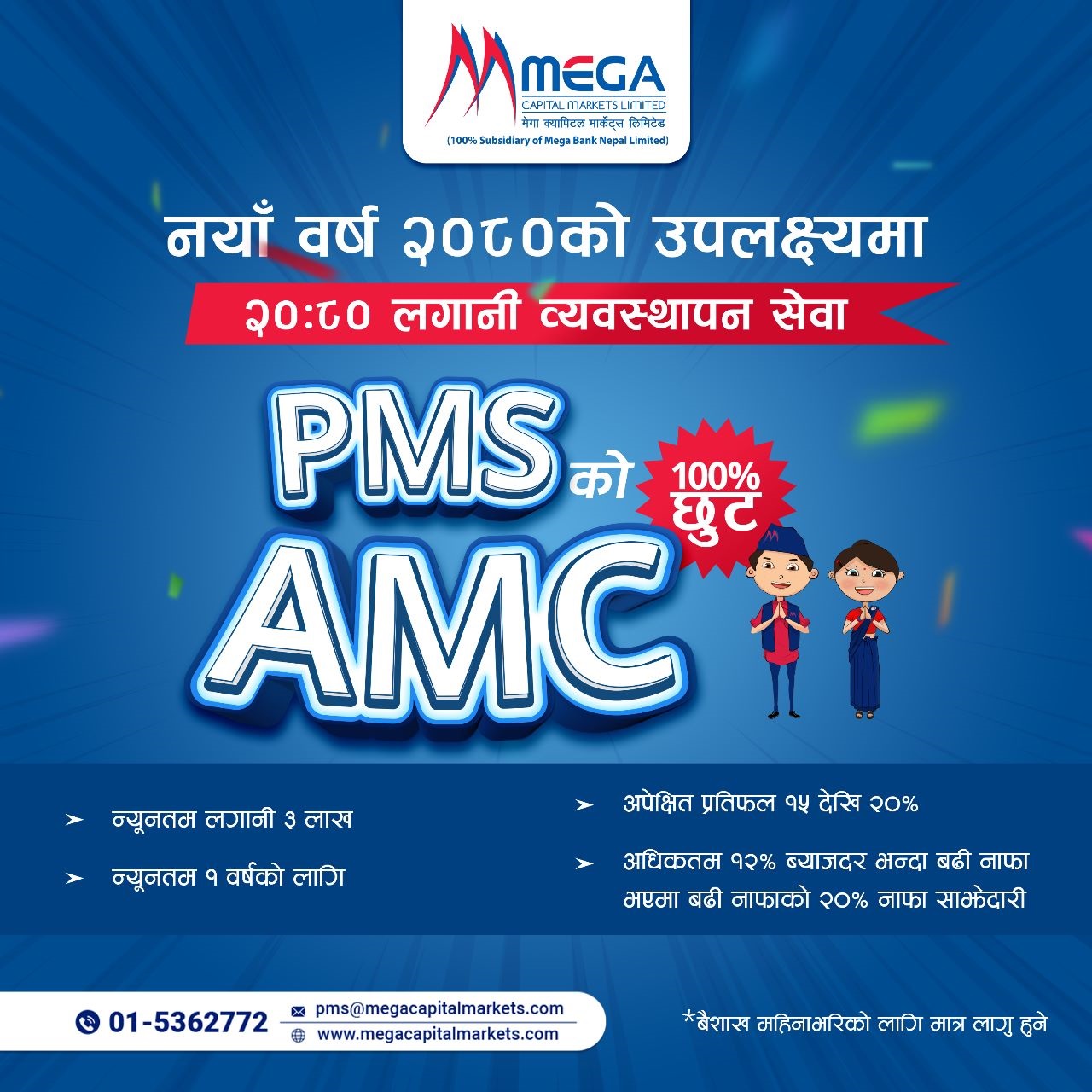 बैंकिङ्ग समाचार, काठमाडौं । मेगा क्यापिटल मार्केट्सले नयाँ वर्ष २०८० को अवसरमा २०:८० लगानी व्यवस्थापन