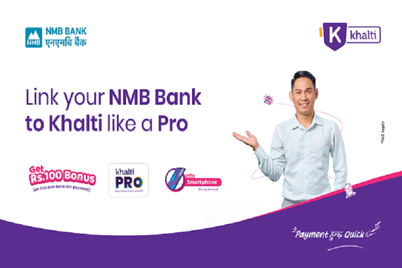 बैंकिङ्ग समाचार, काठमाडौं । खल्तीले एनएमबि बैंकसँगको सहकार्यमा एनएमबि बैंक खाता खल्तीमा लिङ्क गर्ने सेवालाई