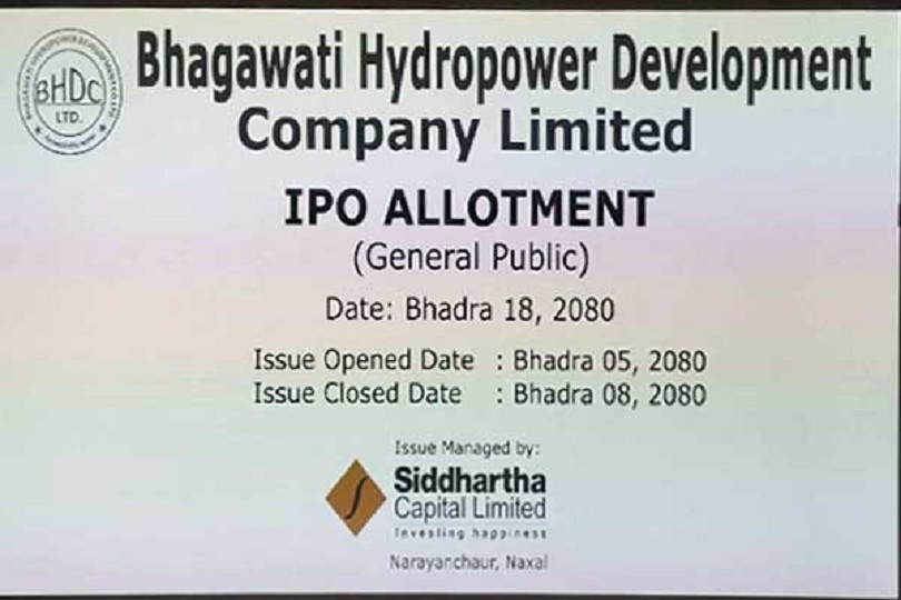 बैंकिङ्ग समाचार, काठमाडौं । भगवती हाइड्रोपावर डेभलपमेन्ट कम्पनी लिमिटेडको आईपीओ भदौ १८ गते सोमबार, बाँडफाँड