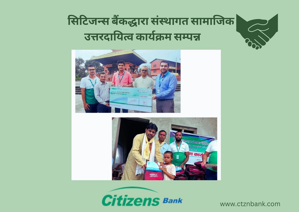 बैंकिङ्ग समाचार, काठमाडौं । सिटिजन्स बैंक इन्टरनेसनल लिमिटेडको नारायणगढ शाखाले संस्थागत सामाजिक उत्तरदायित्व अन्तर्गत श्री