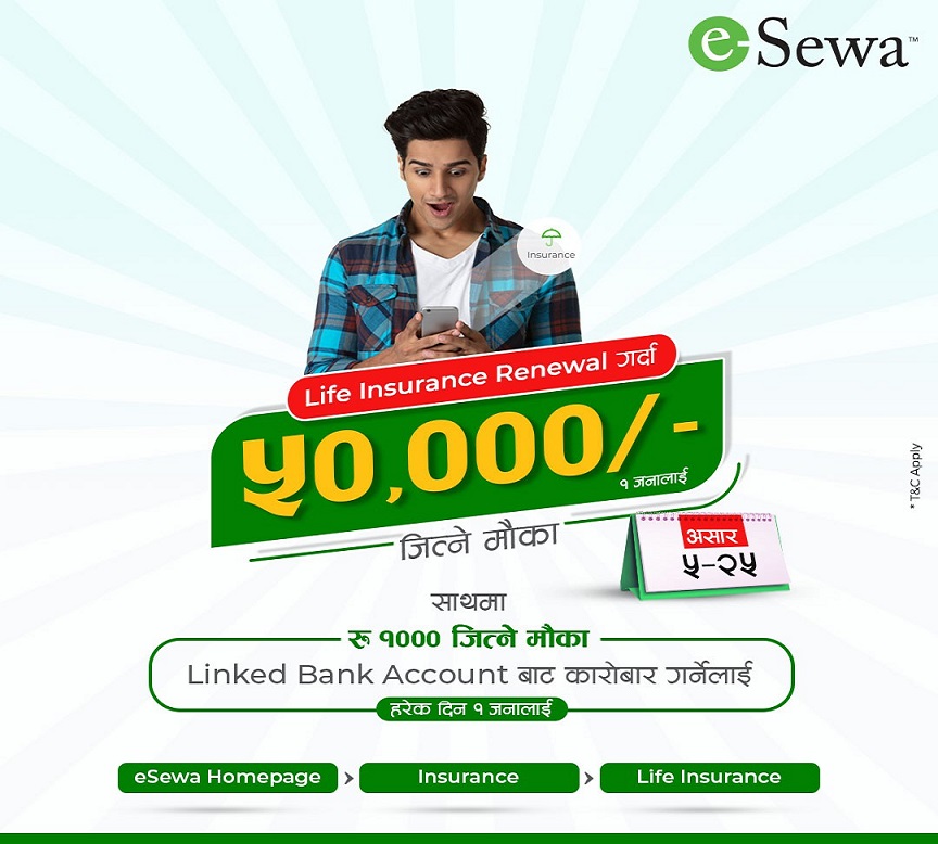 बैंकिङ्ग समाचार, काठमाडौं । नेपालको पहिलो र अग्रणी भुक्तानी सेवा प्रदायक इसेवा मार्फत लाइफ इन्स्योरेन्स्को