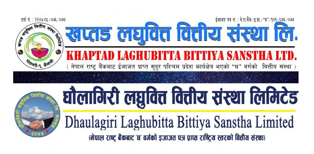 बैंकिङ्ग समाचार, काठमाडौं । धौलागिरी लघुवित्त वित्तीय संस्था लिमिटेड र खप्तड लघुवित्त वित्तीय संस्था लिमिटेडलाई
