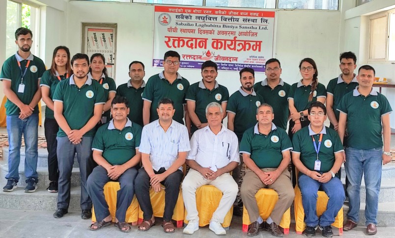 बैंकिङ्ग समाचार काठमाडौं । सबैको लघुवित्त वित्तीय संस्था लिमिटेडको पाँचौं स्थापना दिवसको उपलक्ष्यमा तनहुँको बन्दिपूर गाउँपालिका–१, डुम्रेस्थित सबैको लघुवित्त वित्तीय संस्था लिमिटेडको केन्द्रीय कार्यालयमा “रक्तदान जीवनदान” भन्ने मूल नाराका साथ रगत नपाएर छटपटाएका ब्यक्तिहरुको जीवन रक्षाको लागि रक्तदान कार्यक्रम सम्पन्न भएको छ । यस रक्तदान कार्यक्रममा ३० जना रक्तदाताहरुले ३० युनिट रक्तदान गर्नु भएको थियो…