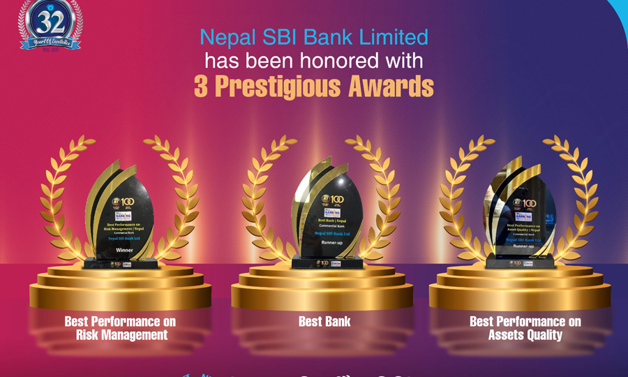 काठमाडौं - नेपाल एसबीआई बैंक लिमिटेडलाई इण्डियन चेम्बर अफ कमर्शले बैंक तथा वित्तीय संस्थाहरुलाई प्रदान गरिने तेस्रो इमर्जिङ एसिया बैंकिङ्ग अवार्ड २०२५ मा तीन प्रतिष्ठित अवार्डद्वारा सम्मानित गरेको छ । बैंकले बेस्ट परफरमेन्स अन रिक्स म्यानेजमेन्ट, बेस्ट बैंक, र बेस्ट परफरमेन्स अन एसेट क्वालिटी विधामा पुरस्कार प्राप्त गरेको हो । भारतको नयाँ दिल्लीमा आयोजित उक्त…