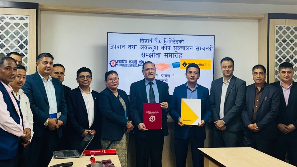 काठमाडौं – नागरिक लगानी कोष र सिद्धार्थ बैंक लिमिटेडबीच उपदान तथा अवकाश कोष सञ्चालनसम्बन्धी सम्झौतामा हस्ताक्षर भएको छ । सम्झौतामा कोषको तर्फबाट कार्यकारी निर्देशक पर्वतकुमार कार्की र बैंकका तर्फबाट प्रमुख कार्यकारी अधिकृत सुन्दरप्रसाद कँडेलले हस्ताक्षर गरेका हुन्। यो सम्झौतासँगै बैंकले हाल सञ्चालन गर्दै आएको योगदानमा आधारित तथा गैरयोगदानमा आधारित उपदान तथा अन्य अवकाश खाता कोषमा…