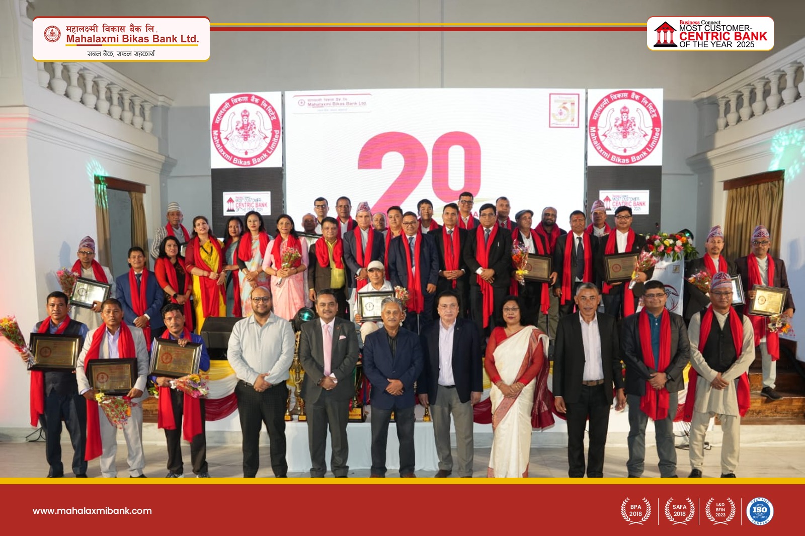 काठमाडौं - महालक्ष्मी विकास बैंकको ३१ औँ वार्षिकोत्सवको अवसरमा २० वर्ष सेवा प्रदान गरेका कर्मचारीहरुलाई एक विशेष कार्यक्रम सहित सम्मान गरिएको छ । बैंकमा इमान्दार, निष्ठा, समर्पण, दायित्वबोध र व्यवसायिकता साथ २० वर्ष सम्म निरन्तर रुपमा बैंकको स्थायित्व, विकास र उत्कृष्टताको यात्रामा महत्वपुर्ण सेवा तथा योगदान पु-याए बापत ३६ जना कर्मचारीहरुलाई काठमाण्डौंमा आयोजित एक विशेष…