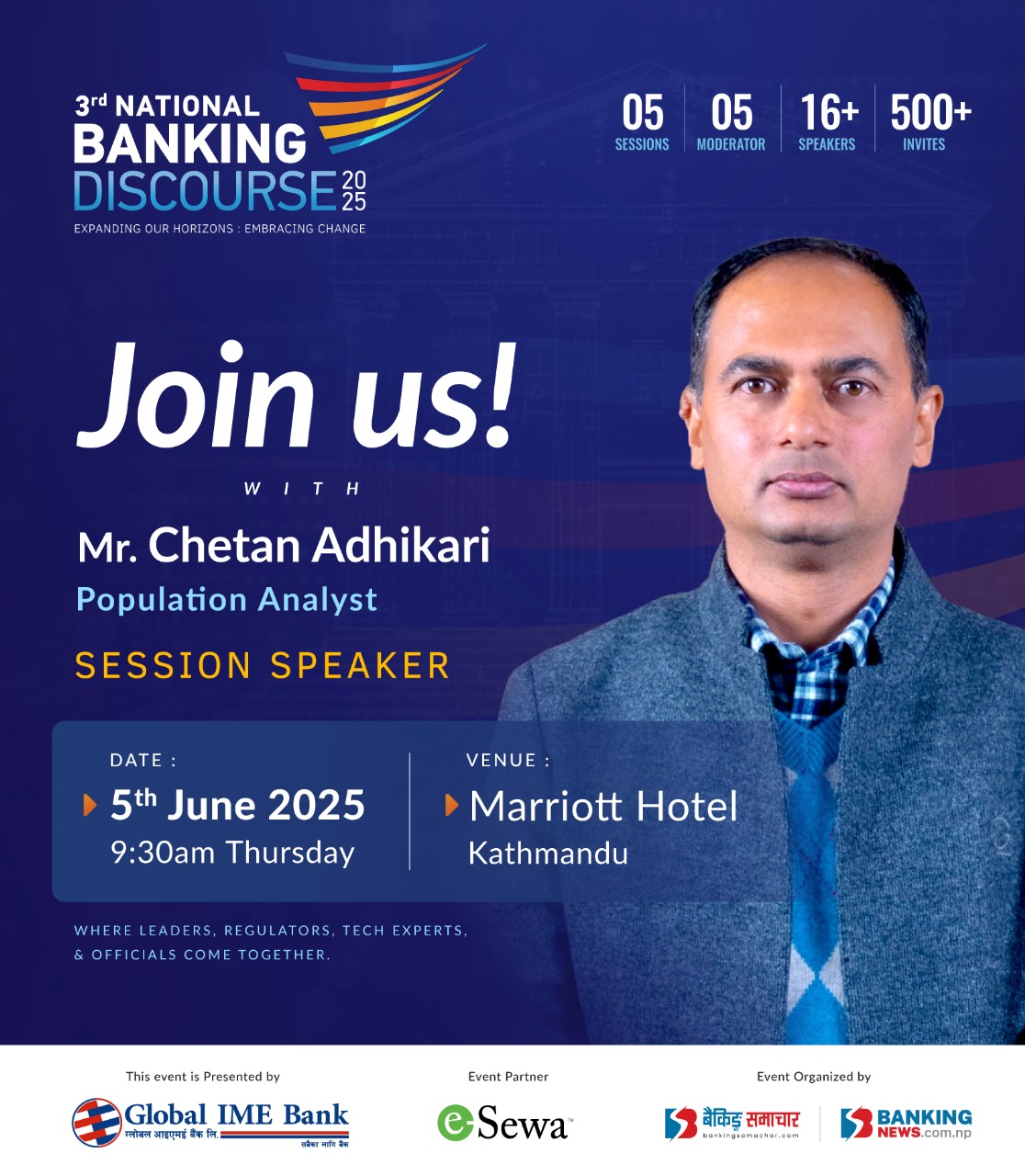 काठमाडौ – तेस्रो बैंकिङ्ग डिस्कोर्श २०२५ को दोस्रो सत्रको वक्ताका रुपमा जनसंख्या विद् चेतन अधिकारी सहभागी हुने भएका छन् । अधिकारी छलफलको दोस्रो सत्र ‘साना तथा मझौला उद्यमहरुमा कर्जा विस्तारको समस्यास् समाधानका नविन तथा प्रचलित अभ्यास र हाम्रो तयारी’ शिर्षकमा हुने छलफलमा वक्ताका रुपमा सहभागी हुने भएका हुन् । चेतन अधिकारी,पत्रकारिता र अनुसन्धानमा संलग्न छन् । उनले जनसंख्या…