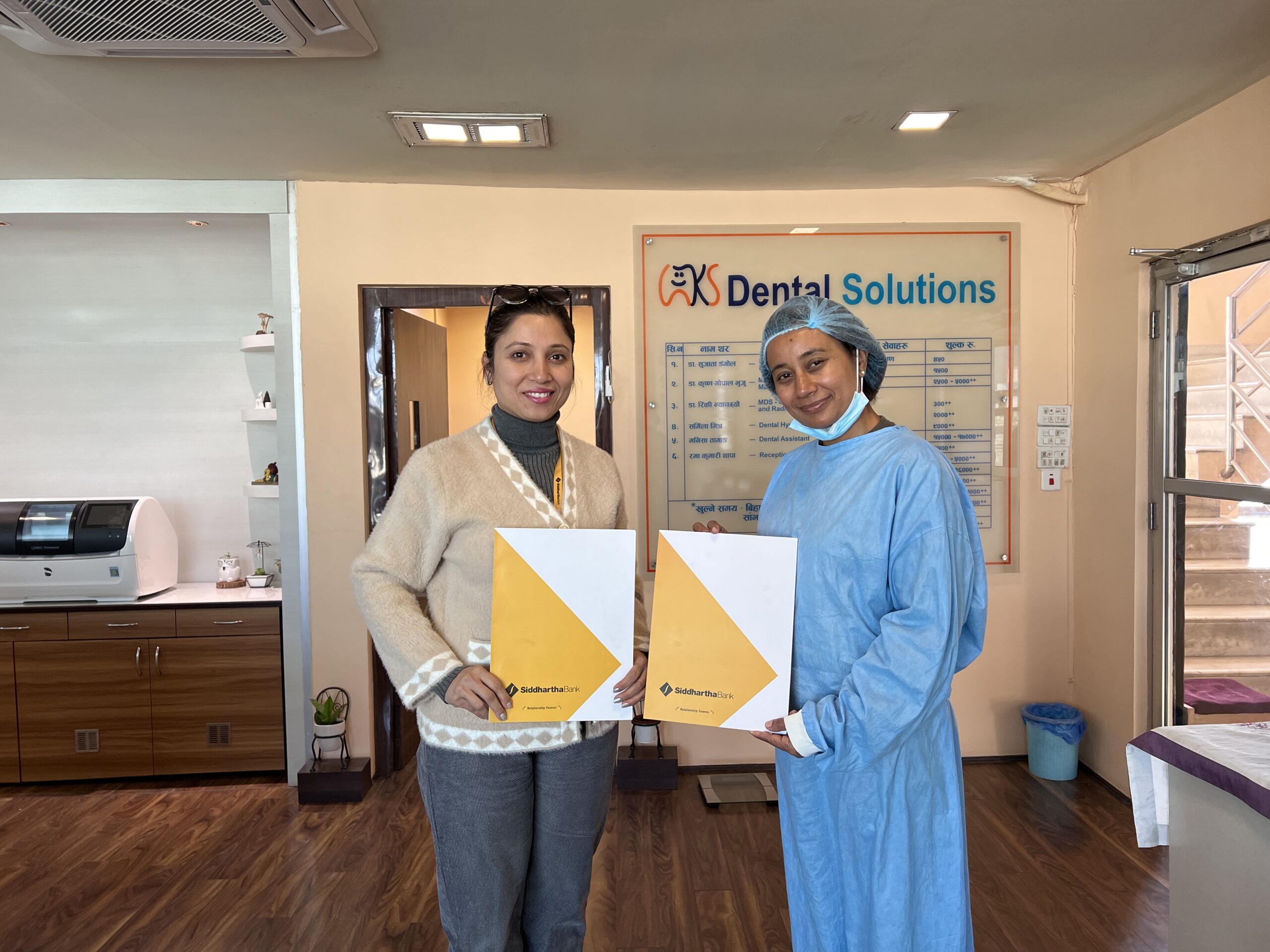 काठमाडौं – सिद्धार्थ बैंक र एल.के.एस डेन्टल सोलुसनस्बीच बैंकका ग्राहकलाई विभिन्न सेवामा छुट प्रदान गर्ने सम्बन्धी सम्झौता भएको छ । सम्झौता अनुसार बिजुलीबजार स्थित एल.के.एस् डेन्टल सोलुसन् काठमाडौंमा बैंकको कार्ड तथा मोबाइल बैंकिङ्ग सेवाबाट भुक्तानी गर्दा दाँत सम्बन्धी सेवामा १० प्रतिशतसम्मको छुट प्राप्त गर्न सक्नेछन् । यस सम्झौताले ग्राहकहरूलाई छुटको सुविधा उपलब्ध गराउनुका साथै नगद…