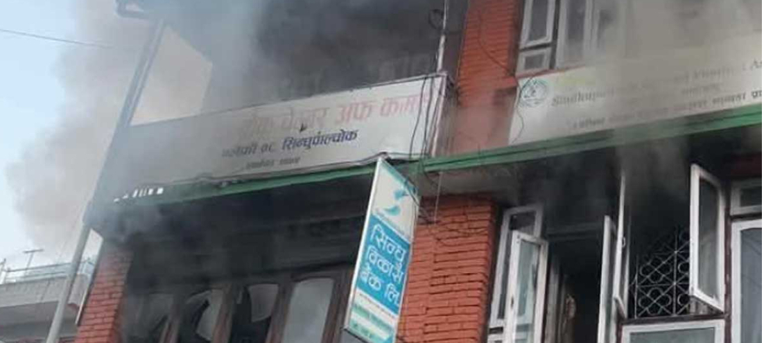 काठमाडाैं - सिन्धु विकास बैंकको सिन्धुपाल्चोकस्थित लामे साँघु शाखामा आगलागी भएको छ। बलेफी गाउँपालिका-८ लामोसाँघुमा रहेको बैंकको शाखामा शनिबार बिजुली सर्ट भई आगलागी भएको हो । स्थानीय, सशस्त्र प्रहरी र नेपाल प्रहरीको सहायताले नियन्त्रणमा लिइएको आगलागीका कारण मानवीय तथा ऋणसँग सम्बन्धित कागज र बैंकमा रहेको नगद सुरक्षित रहेको इलाका प्रहरी कार्यालय बाह्रबिसेले जानकारी दिएको छ…