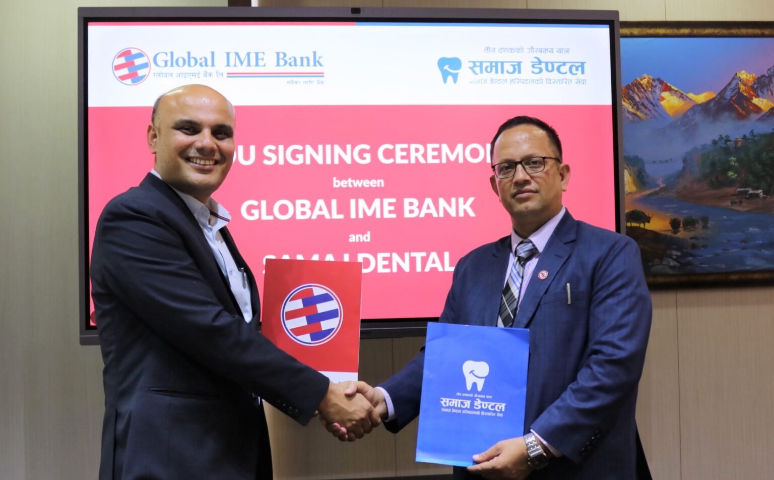 काठमाडौं – ग्लोबल आइएमई बैंक लिमिटेडका ग्राहकले समाज डेन्टल अस्पतालमा विशेष छुट पाउने भएका छन् । यससम्बन्धी सम्झौतामा बैंकका ट्रान्जेक्सन बैंकिङ्ग सेल्स तथा विजनेश प्रमुख प्रकाश पौडेल र समाज डेन्टल अस्पतालका प्रबन्ध निर्देशक शंकु घिमिरेले हस्ताक्षर गरे । साथै, बैंकको क्रेडिट कार्ड मार्फत भुक्तानी गर्दा १२ महिनासम्म किस्ताबन्दीमा भुक्तानी गर्न मिल्ने सेवा (ईएमआई) समेत प्रदान…