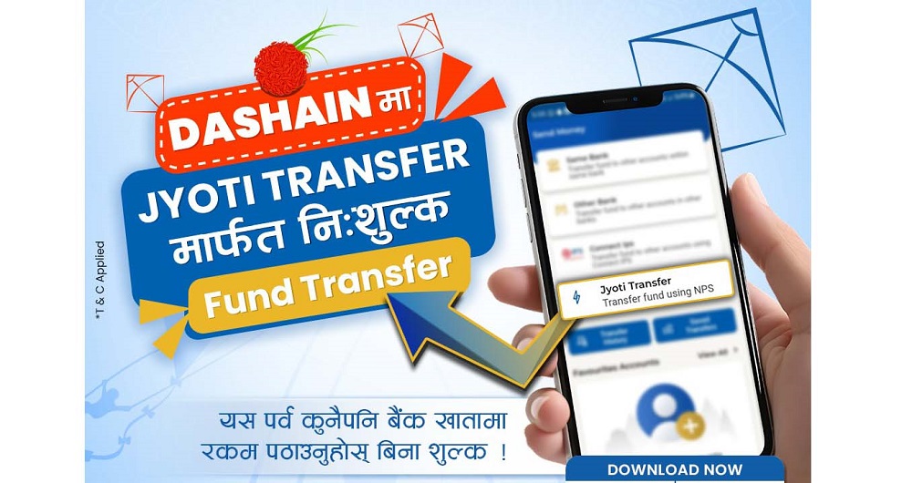 काठमाडौं – ज्योति विकास बैंकले दशैंको उपलक्ष्यमा निःशुल्क फण्ड ट्रान्सफर योजना सार्वजनिक गरेको छ । योजना अन्तर्गत ज्योति विकास बैंकका ग्राहकहरूले बैंकको मोबाइल बैंकिङ्ग एप ज्योति स्मार्टमा रहेको ज्योति ट्रान्सफरमार्फत कुनै पनि बैंकमा पैसा ट्रान्सफर गर्दा कुनै पनि अतिरिक्त शुल्क तिर्नुपर्ने छैन । अब शून्य रुपैयाँमै फण्ड ट्रान्सफर हुने बैंकले जनाएको छ । विद्युतीय कारोबारलाई…