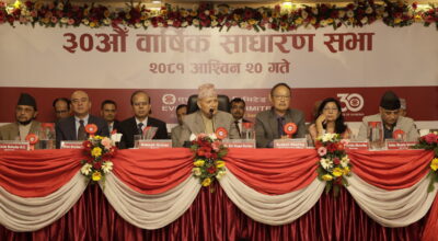 काठमाडौं – ग्लोबल आइएमई बैंकको आर्थिक वर्ष २०८०।८१ का लागि लाभांश घोषणा गरेको छ। बैंकले शेयरधनीहरूलाई ५।५ प्रतिशत लाभांश वितरण गर्ने घोषणा गरेको छ । बैंक सञ्चालक समितिको सोमबार बसेको बैठकले उक्त आर्थिक वर्षको वितरणयोग्य मुनाफा तथा पुँजी समायोजन कोषसमेतबाट शेयरधनीहरुलाई लाभांश वितरण गर्ने निर्णय गरेको हो। प्रस्तावित लाभांश नेपाल राष्ट्र बैंकको स्वीकृतिपछि आगामी १८…