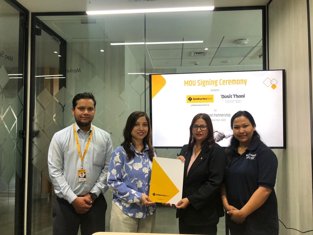 काठमाडौं – सिद्धार्थ बैंक र दुसित थानि हिमालयन रिसोर्ट प्राइभेट लिमिटेड (धुलिखेल – काठमाडौं) बीच बैंकका ग्राहकहरुलाई विभिन्न सेवामा छुट प्रदान गर्ने सम्बन्धी सम्झौता भएको छ । सम्झौता अनुसार बैंकका ग्राहकहरुले धुलिखेलस्थित दुसित थानि हिमालयन रिसोर्टमा बैंकको कार्ड तथा मोबाइल बैंकिङ्ग सेवाबाट भुक्तानी गर्दा फुड र बेभरेजका साथै अन्य सेवामा १५% सम्मको छुट पाउन सक्नेछन्…