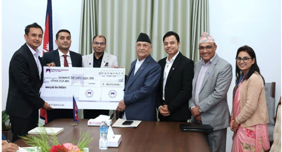 काठमाडौं – माछापुच्छ्रे बैंकले प्रधानमन्त्री दैवी प्रकोप उद्धार कोषमा २५ लाख सहयोग गरेको छ । बैंकले प्रधानमन्त्री दैवी प्रकोप उद्धार कोषमा विगत केही समय अगाडी आएको बाढीपहिरो र डूबानबाट प्रभावित तथा पिडितहरूलाई सहयोग पुगोस भन्ने उद्धेश्यले २५ लाख रुपैयाँ सहायता स्वरुप प्रदान गरेको हो । बैंकको संस्थागत सामाजिक उत्तरदायित्व अन्तर्गत बैंकका अध्यक्ष रोशन केसीले प्रधानमन्त्री…