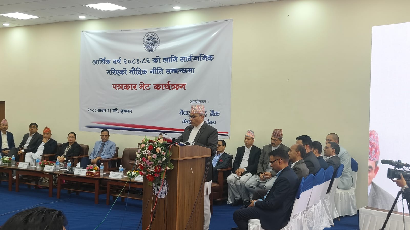 काठमाडौं–नेपाल राष्ट्र बैंकले आर्थिक वर्ष २०८१/८२ को मौद्रिक नीति सार्वजनिक गरेको छ । नेपाल राष्ट्र बैंकका गभर्नर महाप्रसाद अधिकारीले आर्थिक वर्ष २०८१/८२ को मौद्रिक नीति सार्वजनिक गरेका हुन् । शुक्रबार बिहान बसेको बैंक सञ्चालक समितिले पारित गरेको मौद्रिक नीति केन्द्रीय बैंकको नवनिर्मित भवनबाट सार्वजनिक भएको छ ।