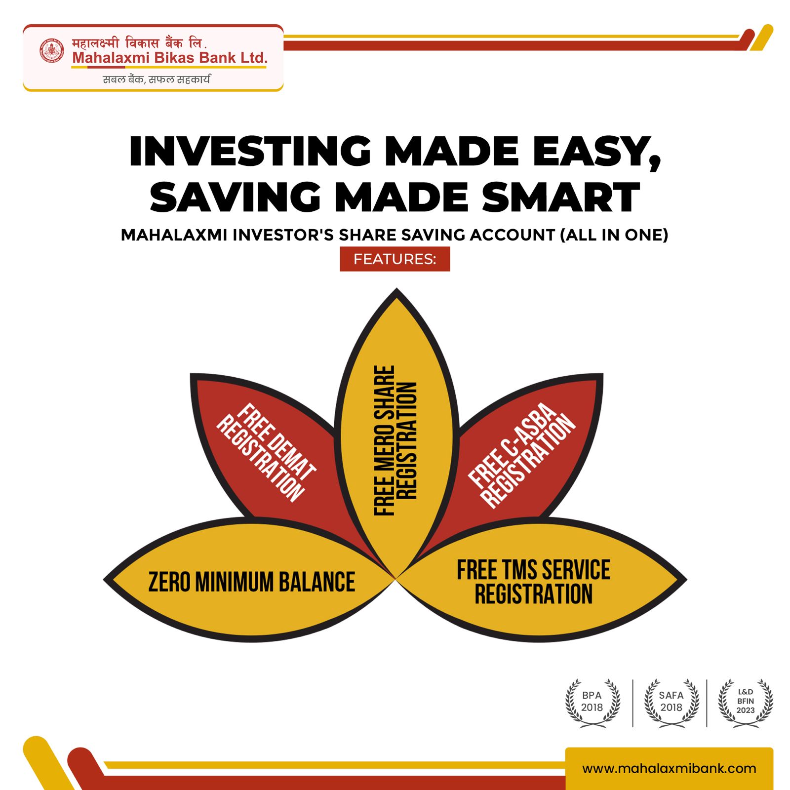 काठमाडौं–नयाँ वर्ष २०८१ अवसरमा महालक्ष्मी विकास बैंकले शेयर किनबेच गर्ने शेयर लगानीकर्ताहरुलाई सबै सुविधा एकै खाता मार्फत प्रदान गर्ने उद्देश्यका साथ महालक्ष्मी इन्भेष्टर्स सेयर सेभिङ्ग खाता (अल इन वान) सञ्चालनमा ल्याएको छ । यस खाता अन्तर्गत बचतकर्ताले बचत खाता, डिम्याट खाता, मेरो शेयर, सि– आश्वा तथा टि.एम.एस खाताको सुविधा एकै खाता मार्फत लिन सक्नेछन् ।…