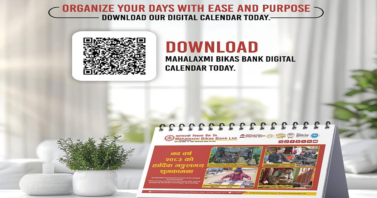 काठमाडौं - महालक्ष्मी विकास बैंकले ‘महालक्ष्मी क्यालेन्डर २०८३’ को डिजिटल संस्करण सार्वजनिक गरेकाे छ। परम्परागत रुपमा प्रकाशन गरिने क्यालेन्डरलाई आधुनिक प्रविधिसँग समायोजन गर्दै जाने उद्धेश्य अनुरुप डिजिटल संस्करण सार्वजनिक गरेकाे हाे। महत्वपूर्ण चाडपर्वहरु, तिथि, विदा, शुभ साइत तथा विक्रम संवत, नेपाल संवत तथा अंगे्रजी संवतको मितिहरु लगायतका सम्पूर्ण विषयवस्तुहरु डिजिटल क्यालेन्डरमा समावेश गरिएको छ। नयाँ…