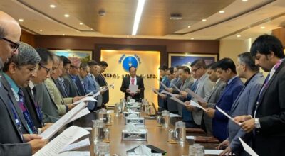काठमाडाैं - नेपाल उद्योग वाणिज्य महासंघले कर्जाको साँवा ब्याज भुक्तानी समय सीमा थप गर्न नेपाल राष्ट्र बैंकसँग आग्रह गरको छ। महासंघका कार्यवाहक अध्यक्ष अन्जन श्रेष्ठको नेतृत्वमा बुधबार राष्ट्र बैंक गएको टोलीले कार्यवाहक गभर्नर डा. निलम ढुङ्गाना तिम्सिनालाई भेटेर सो आग्रह गरेको हो। महासंघले चालु आर्थिक वर्षको प्रथम त्रैमास (असोज–मसान्त) मा कर्जाको सावा ब्याजको किस्ता बुझाउने समय…