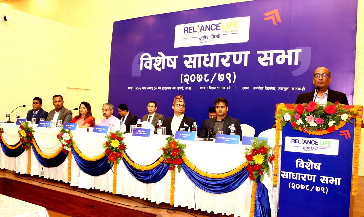 बैंकिङ्ग समाचार, काठमाडौं । रिलायन्स लाइफ इन्स्योरेन्सको साधारण सभाले अधिकृत पूँजी बृद्धि गर्ने प्रस्ताव पारित गरेको छ । कम्पनीको असार २० गते सम्पन्न विशेष साधारण सभाले कम्पनीको अधिकृत पुँजी ३ अर्ब रुपैयाँबाट बृद्धि गरी ५ अर्ब पुर्याउने प्रस्ताव पारित गरेको हो । कम्पनीले अधिकृत पूँजी बृद्धि गर्ने, कम्पनीको प्रबन्धपत्रमा पूँजी बृद्धि एवंं अन्य व्यबस्थाहरु समेत…
