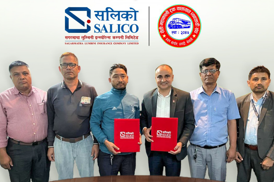काठमाडाैं- सगरमाथा लुम्बिनी इन्स्योरेन्स कम्पनी लिमिटेड (सलिको) र सेती महाकाली ट्रक यातायात व्यवसायी संघ बीच बीमा सेवा सम्बन्धी एक सम्झौता पत्रमा हस्ताक्षर भएको छ । सम्झौतापत्र अनुसार सेती महाकाली ट्रक यातायात व्यवसायी संघ मा रहेका ट्रकहरुको मोटर बीमा सलिको इन्स्योरेन्सले गर्ने भएको हो । उक्त सम्झौतापत्रमा सलिको इन्स्योरेन्सको तर्फबाट नायव महा प्रबन्धक कवि राज पौडेल …