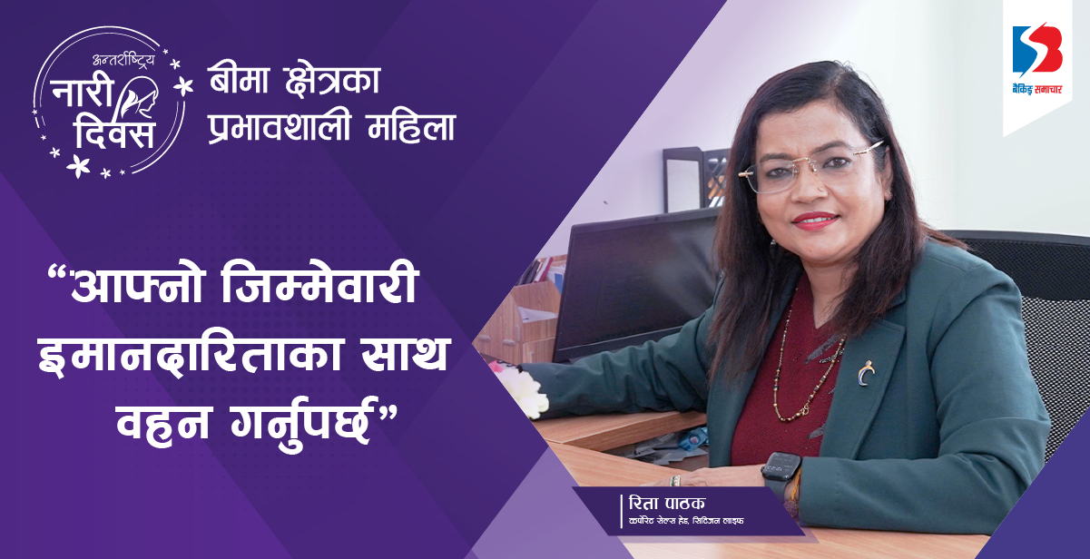 काठमाडाैं – सिटिजन्स लाइफ इन्स्योरेन्सकी कर्पोरेट सेल्स हेड रिता पाठक, जो चितवनको रत्न नगरमा जन्मिहुर्किन् । सानैदेखि भाइबहिनी सम्हाल्ने जिम्मेवारी पाएकी उनी आफूले पाएको जिम्मेवारी सफलतापूर्वक पुरा गर्छिन् । घरकी जेठी छोरी आफ्ना भाइबहिनी सम्हाल्न पाठकलाई घरमा आमापछिको जिम्मेवारी थियो । मध्यम वर्गीय परिवारमा जन्मिएकाले उनले अध्ययनको सुरुवात सरकारी विद्यालयबाटै गरिन् । जुन, जिल्लाभरिकै उत्कृष्ट…