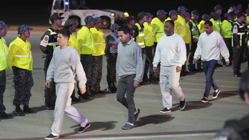 काठमाडाैं - संयुक्त राज्य अमेरिकाबाट निष्काशित १९९ आप्रवासी बोकेको विमान सोमबार बिहान भेनेजुएला आइपुगेको गृहमन्त्री डिओसडाडो काबेलोले बताएका छन् । 'आज, हामी १९९ जना स्वदेशीहरूलाई स्वागत गर्दैछौं,' उनले विमानस्थलमा बताए, 'हामी भेनेजुएलाका मानिसहरू जहाँ भए पनि स्वागत गर्न तयार छौं ।' प्रत्यक्ष फुटेजमा स्वेटसूट लगाएका युवाहरू राजधानी काराकास बाहिर अवतरण गरेको विमानबाट ओर्लिरहेको देखाइएको छ…