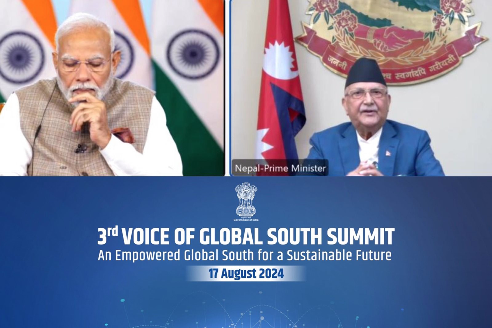 काठमाडौं - प्रधानमन्त्री केपी शर्मा ओलीले भारत सरकारद्वारा आयोजित तेस्रो शृङ्खलाको ‘ग्लोबल साउथ समिट’ को उद्घाटन सत्रलाई आज भर्चुअलरुपमा सम्बोधन गरेका छन । यस क्षेत्रका करिब १५ राष्ट्रप्रमुुख तथा सरकारप्रमुखबाट सम्बोधन भएको सम्मेलनबारे प्रधानमन्त्री ओलीले ट्वीट गर्दै यस महत्वपूर्ण प्रयासलाई सुरु गरेर जारी राखेकामा भारतका प्रधानमन्त्री नरेन्द्र मोदीलाई बधाई दिए । 'हामीले साझा प्रयासबाट हाम्रो…