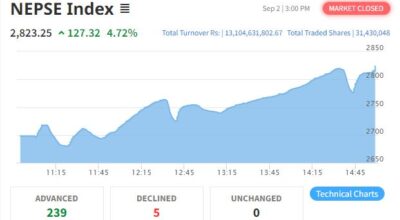 काठमाडौं – एभरेष्ट बैंक गत आर्थिक वर्षको मुनाफाबाट आफ्ना लगानीकर्तालाई लाभांश घोषणा गर्ने पहिलो वाणिज्य बैंक बनेको छ । बैंकले गत आर्थिक वर्षको मुनाफाबाट आफ्ना शेयरधनीलाई १५.५३ प्रतिशत लाभांश घोषणा गर्दै पहिलो बैंक बनेको हो । यसअघि कुनै पनि वाणिज्य बैंकले गत वर्षको मुनाफाबाट लाभांस घोषणा गरिसकेका छैनन् । एभरेष्ट बैंकले आफ्ना लगानीकर्तालाई १० प्रतिशत…