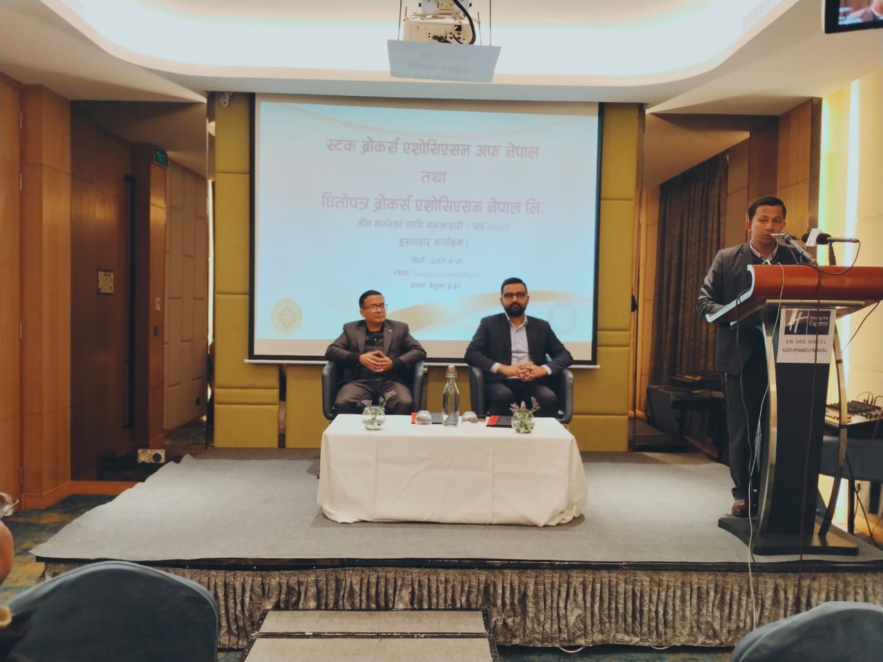 काठमाडौं – धितोपत्र बजारका ब्रोकर्स कम्पनीका दुई साझा संस्था आपसमा गाभिएका छन् । आज भएको एक कार्यक्रममार्फत दुई वटा संस्था मिलेर एउटै संस्था अस्तित्वमा राख्ने सम्झौता भएको हो । यससँगै, ३१ वर्ष लामो इतिहास बोकेको स्टक ब्रोकर्स एसोसिएसन अफ नेपाल सञ्चालनमा रहने भएको हो । स्टक ब्रोकर्स एसोसिएसन अफ नेपाल र धितोपत्र ब्रोकर्स एसोसिएन नेपालबीच…