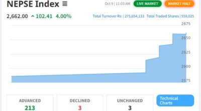 काठमाडौं – नेपाल राष्ट्र बैंकले शेयर बजारमा लागिरहेको २५ करोडको ऋणको सीमा हटाएपछि पनि शेयर शेयर बजारमा भारी अंकको गिरावट आइएको छ । अघिल्लो कारोबारको दिन (बिहिबार) बजारमा सन्तोषजनक वृद्धि देखिएर बजार बन्द हुँदा आज भने भारि अंकले बजार घटेर बन्द भएको छ । आज आइतबार नेप्से परिसूचक ७८.८३ अंकले घटेसँगै ६ अर्ब ७० करोड…