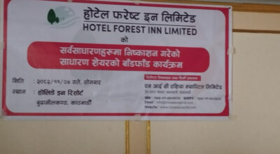 काठमाडौं – शिखर पावर डेभलपमेन्ट लिमिटेडले फागुन १७ गतेदेखि सर्वसाधारण लागि आईपीओ निष्काशन गर्ने भएको छ। कम्पनीले पहिलो चरणमा आयोजना प्रभावित क्षेत्रका स्थानिय बासिन्दा र वैदेशिक रोजगारीमा रहेका नेपालीहरुका लागि निष्काशन गरेको आईपीओ बाँडफाँटपश्चात् अब दोस्रो चरणमा सर्वसाधारण लगानीकर्ताहरुका लागि आईपीओ निष्काशन गर्न लागेको हो। कम्पनीले जारी पूँजी ९८ करोड रुपैयाँको ३२.६५ प्रतिशत अर्थात् ३२…
