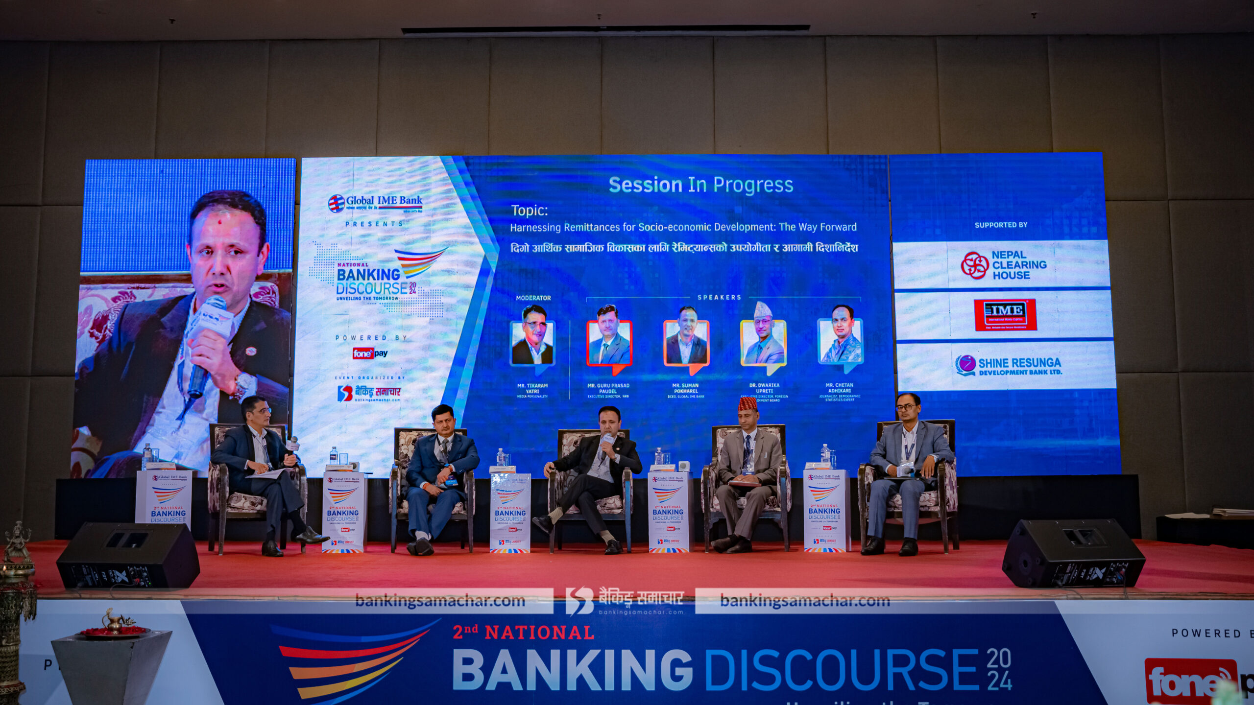 काठमाडौं – ग्लोबल आइएमई बैंकका नायब प्रमुख कार्यकारी अधिकृत (डिसीईओ) सुमन पोखरेलले पछिल्लो ४/५ वर्षयता अनौपचारिक माध्यमबाट रेमिट्यान्स भित्रिने क्रम घटेको दाबी गरेका छन्। डिसीईओ पोखरेलले ‘दोस्रो नेशनल बैंकिङ्ग डिस्कोर्सको २०२४’ को तेस्रो सत्र ‘सामाजिक आर्थिक विकासका लागि रेमिट्यान्सको दिगो उपयोगिता र आगामी दिशानिर्देश’ मा नेपाल राष्ट्र बैंक, अन्य बैंक तथा वित्तीय संस्थाका साथै सरकारको पहलमा…
