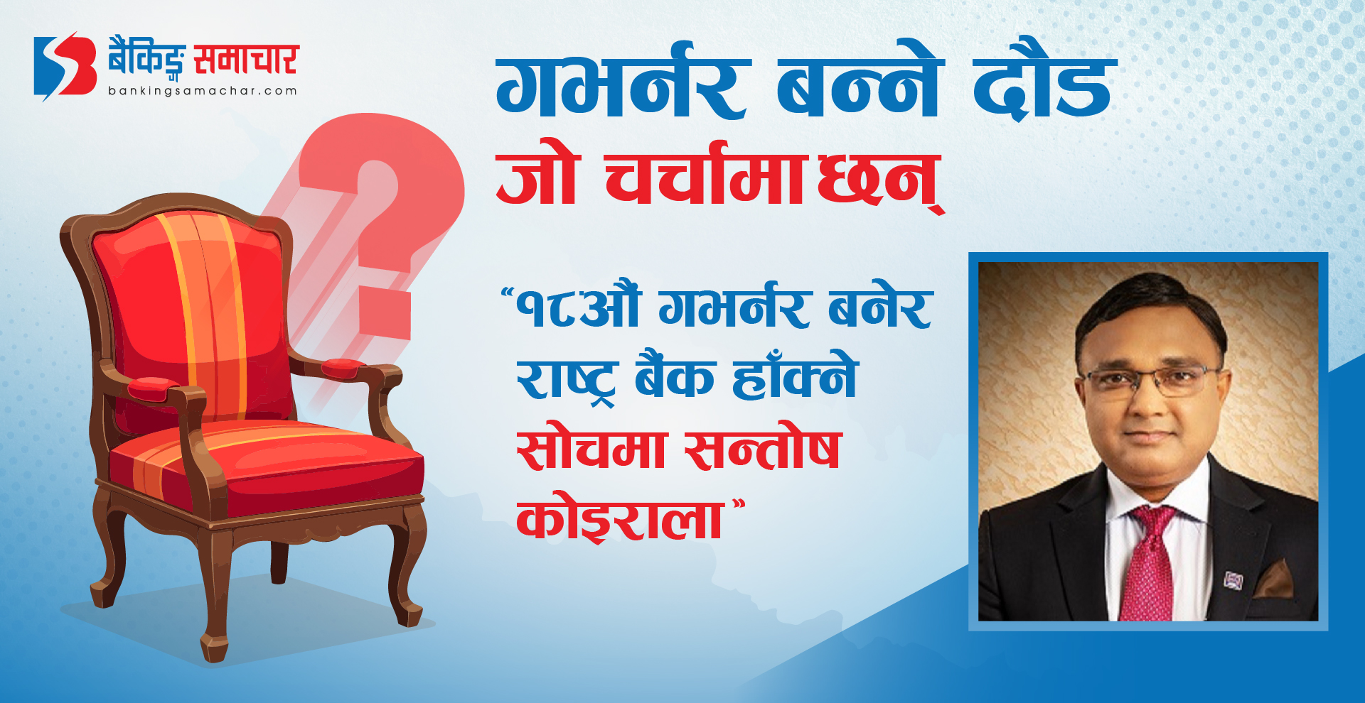 काठमाडौं – सरकार १८औं गभर्नर नियुक्तिको अन्तिम चरणमा छ । १७औं गभर्नर महाप्रसाद अधिकारीको कार्यकाल सकिने समय नजिकिँदै गर्दा सरकारले भावी गभर्नर नियुक्तिको लागि अर्थमन्त्री विष्णुप्रसाद पौडेलको नेतृत्वमा सिफारिस समिति नै बनिसक्यो । ३ सदस्यीय सिफारिस समितिमा डा. विश्व पौडेलसहित विजयनाथ भट्टराई नियुक्त भएको बताइएको थियो । तर, पछि सरकारले यो विषयमा थप जानकारी बाहिर…