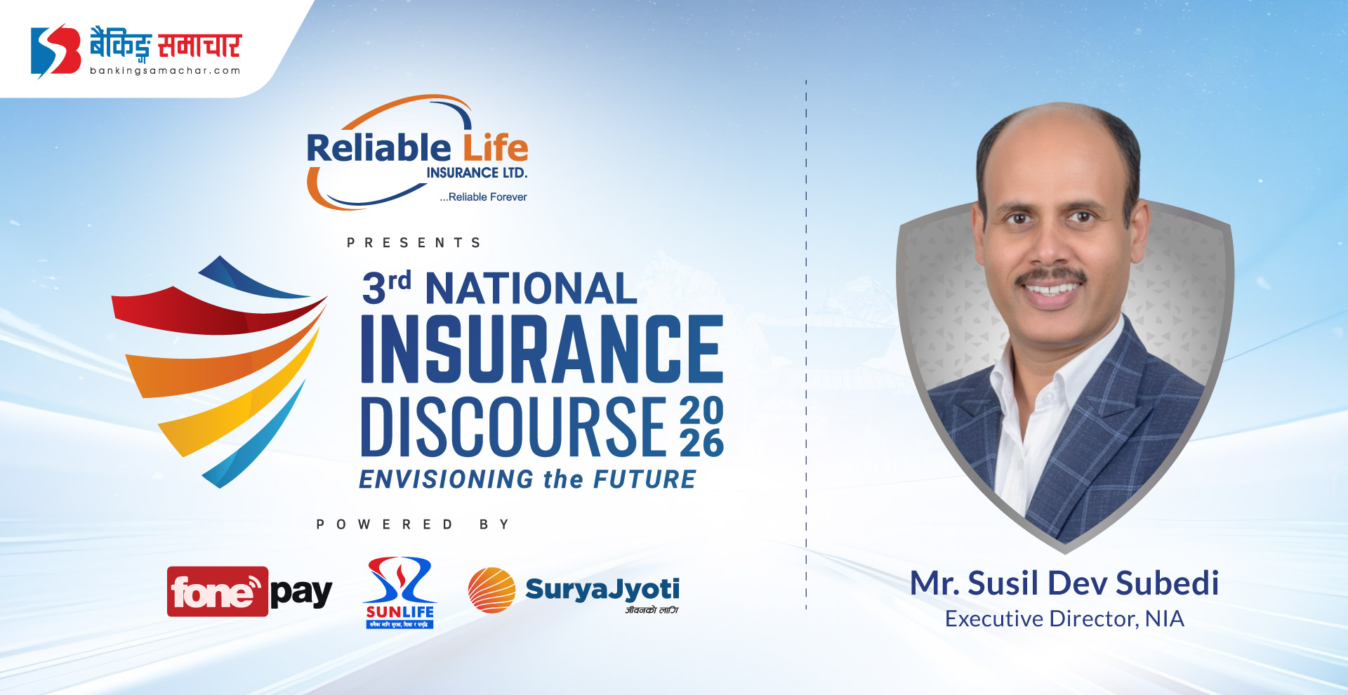 काठमाडौं – तेस्रो इन्स्योरेन्स डिस्कोर्श २०२६ को उद्घाटन सत्रमा नेपाल बीमा प्राधिकरणका कार्यकारी निर्देशक सुशिलदेव सुवेदी सहभागी हुने भएका छन्। आगामी माघ ७ गते बैंकिङ्ग समाचार र न्युज अफ इन्स्योरेन्सको संयुक्त आयोजनामा हुन लागेको इन्स्योरेन्स डिस्कोर्शको उद्घाटन सत्रमा सुवेदी सहभागी हुने भएका हुन्। सुवेदी हाल नेपालका बीमा कम्पनीको नियामक निकाय बीमा प्राधिकरणका निर्देशकमा कार्यरत छन्।…