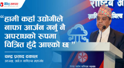 धुलिखेल – नेपाल उद्योग वाणिज्य महासङ्घका अध्यक्ष चन्द्रप्रसाद ढकालले कुनै पनि आन्दोलनका क्रममा उद्योगलाई निशाना बनाउने र व्यक्तिका उद्योग, घर, सम्पत्ति आगजनी तथा लुटपाट हुनु दुःखद् भएको बताएका छन् । आज बनेपामा काभ्रे उद्योग वाणिज्य सङ्घले आयोजना गरेको ४३औँ वार्षिक साधारणसभा तथा ५९औँ स्थापना दिवसको उद्घाटन गर्दै उनले युवालाई रोजगारी दिने र राजस्व सङ्कलन गरेर…