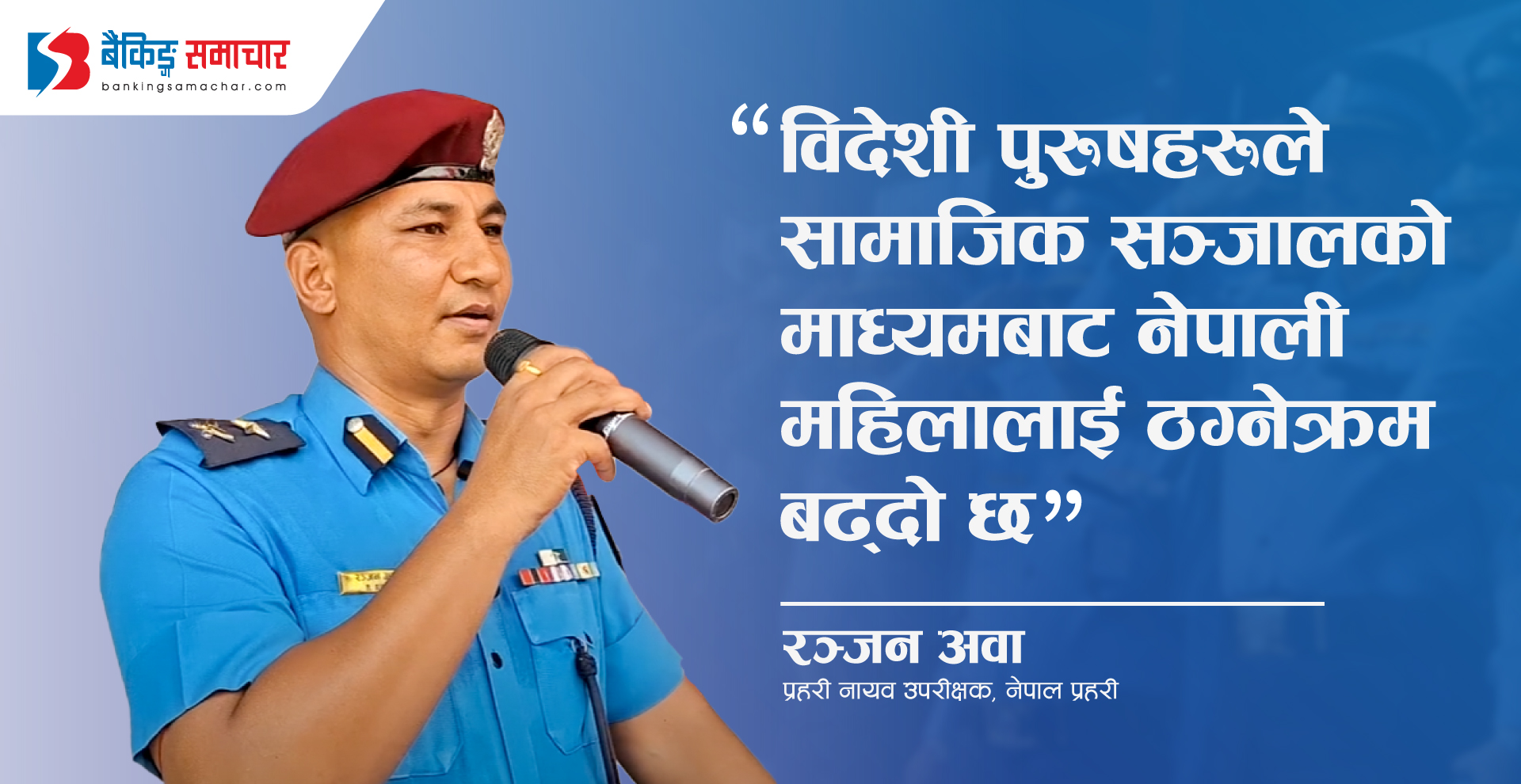 काठमाडौं – इलाका प्रहरी कार्यालय टाँडीका प्रमुख प्रहरी नायव उपरीक्षक (डीएसपी) रञ्जन अवाले सामाजिक सञ्जालमार्फत मीठा कुरा गर्ने विदेशीको विश्वासमा परेर नेपाली महिलाहरूले लाखौँ रुपैयाँ गुमाउने गरेकाे बताएका छन् । डीएसपी अवाकाअनुसार प्रहरीमा हाल त्यस्ता उजुरी दैनिक ३ देखि ४ वटासम्म आउने गरेको छ। नेपाली महिलाहरू विदेशी नागरिकको जालमा परी आफूलाई उपहार र डलर पठाएको…